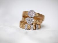 Our flat-lay of mixed gold and diamond rings — a practical guide to building a stack that still feels refined.